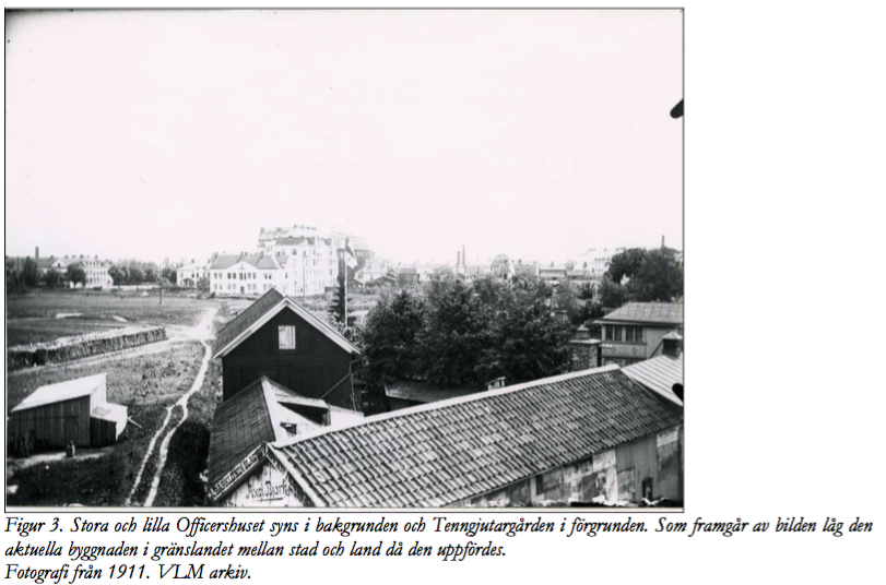 Officershuset uppfördes som bostäder till officerare i samband med att Västmanlands regemente flyttade till Västerås från Salbohed vid 1900-talets början.2 Ritningarna upprättades av Magnus Dahlander och byggnaden stod klar 1904. Dahlander (1862 – 1951) var stadsarkitekt i Örebro 1899–1913 och kom senare även att bli länsarkitekt för Västmanlands, Kopparbergs och Gävleborgs län.3 Han har i Västerås också ritat Gamla annexet vid Rudbeckianska skolan.