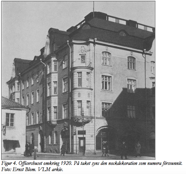 kallad automatrestaurang. Detta var en nymodighet för tiden, enligt Nordisk familjebok från år 1904 hade den första liknande restaurangen öppnats i Stockholm 1899. Därefter hade modet spridit sig snabbt till de större städerna. Gästerna fick i denna typ av restauranger servera sig själv ur en för ändamålet konstruerad automat. Sedan regementet lagts ned 1927 togs fastigheten över av AB Officershuset, vilka drev fastigheten vidare som affärs- och bostadshus. År 1951 installerades hiss och centralvärme i byggnaden och i samband med detta togs de flesta kakelugnarna bort.